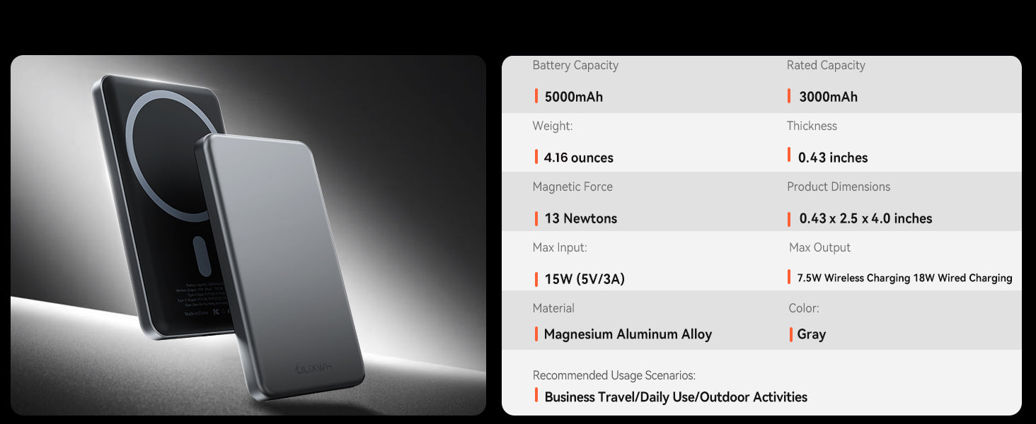 ULiXWH MagS-1 Power Bank (5000mAh, Slim, Grey)