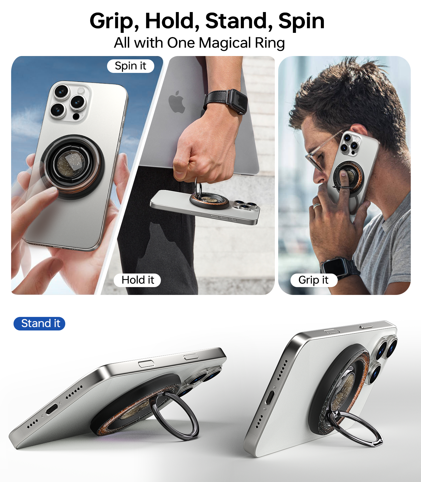 • Secure Grip & Adjustable Kickstand